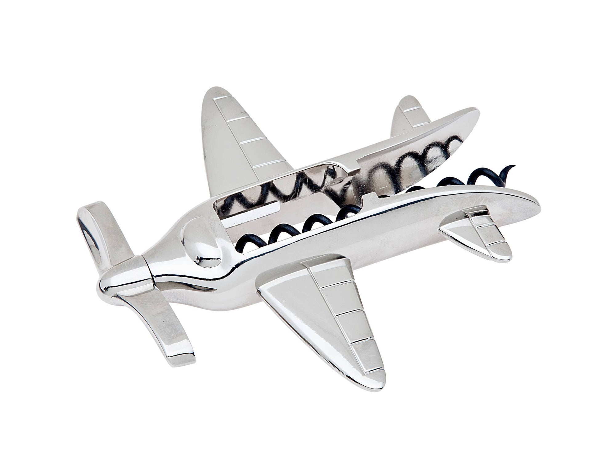 Airplane Wine Bottle Opener - nickelplate - 5.12" L x 5.51" W x .98" H