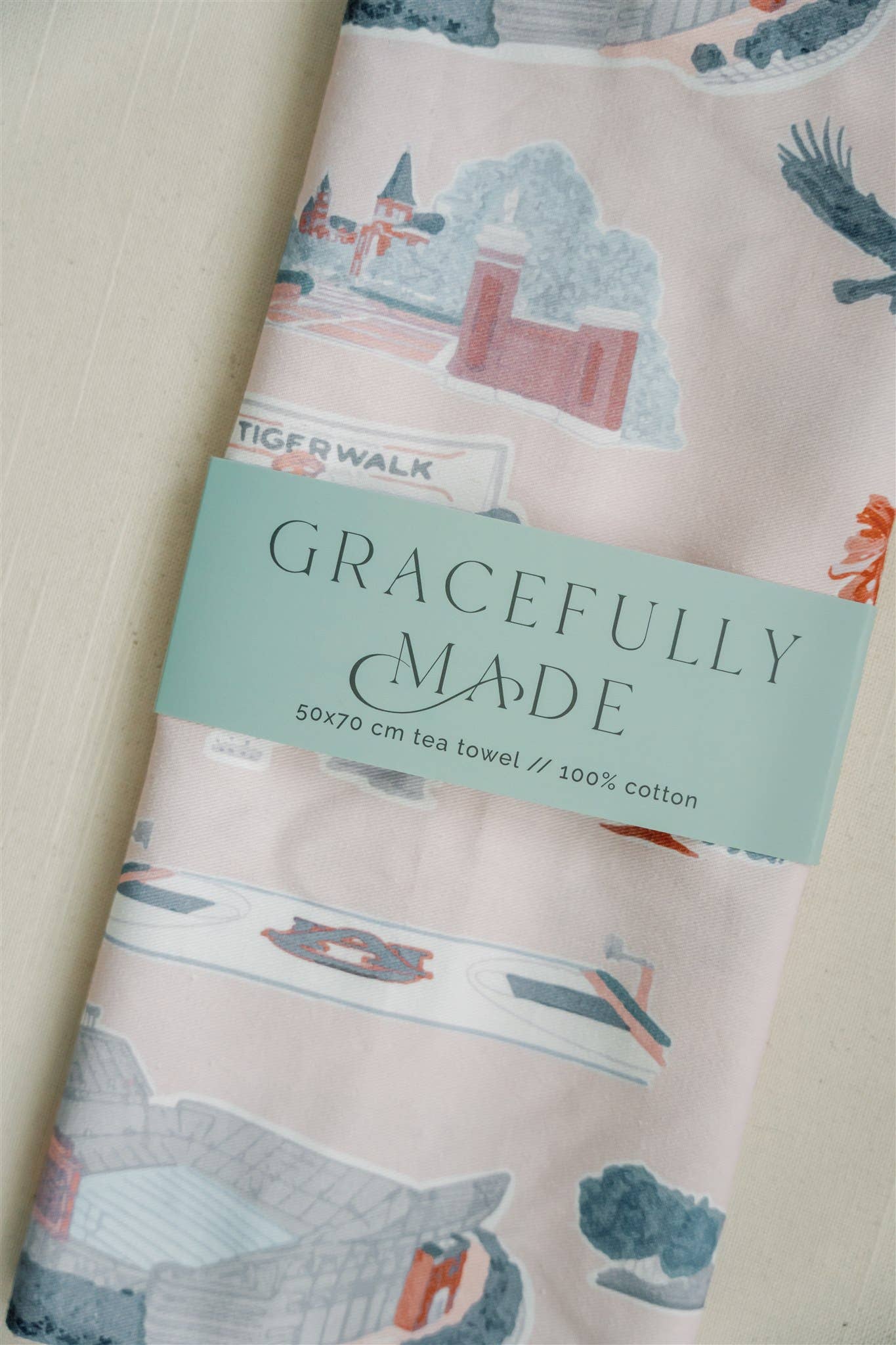 19x29 inch 100% cotton flour sack tea towel featuring an Auburn University pattern.