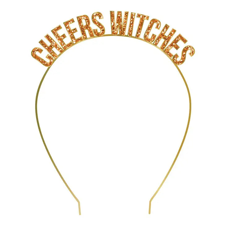 Anytime you get your witches together at Halloween, it's the perfect time to wear the headband and proclaim your style! Headband is metal with "CHEERS WITCHES" in metal with orange glitter coloring.