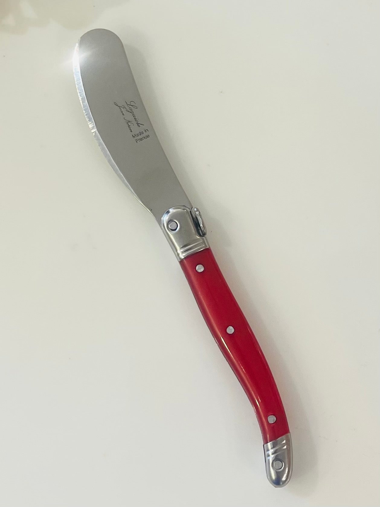 Made from high grade stainless steel with an acrylic handle, this Jean Dubost Laguiole mini spreader is a cute way to add a light touch of color to your appetizer plate. Use this spreader to spread your favorite jam, soft cheeses, or nut butters. This spreader is 6 inches in length.