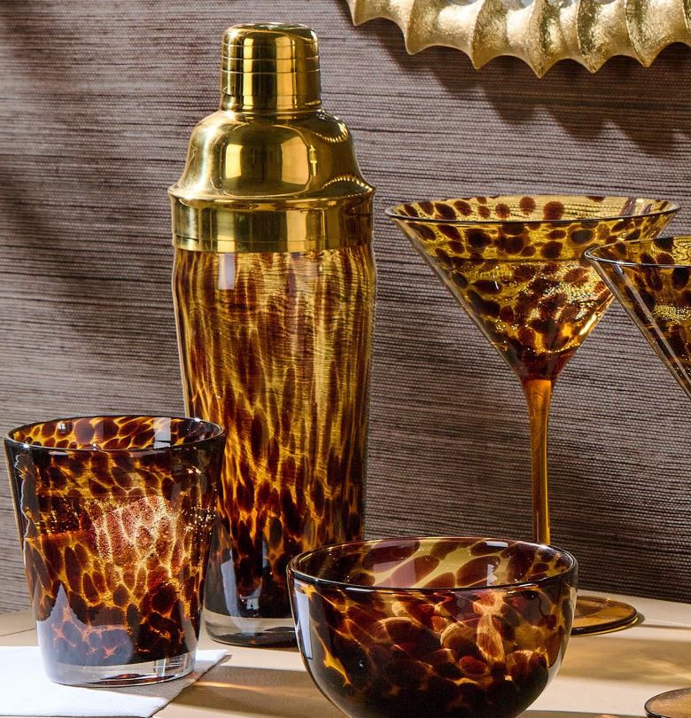 Elevate your cocktail game with our Tortoise Print Cocktail Shaker, a true showstopper in glass and stainless steel. Each piece is unique with a stunning tortoise print that adds a touch of sophistication to any bar cart. Handcrafted with care, this shaker is both functional and stylish, making it a must-have for any home mixologist.
